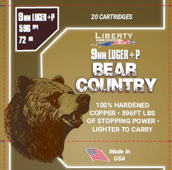 “Bear Country” is the hardest hitting 9mmm and 10mm designed specifically for people out in the woods.The 9mm will penetrate 26” with a hardened copper bullet that smashes through bone, not flatten like a lead bullet. You will finally have the most effective self-defense ammunition against predators and it’s lighter to carry.