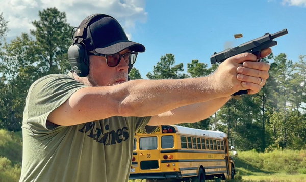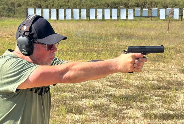 The review coincided with both the basic and advanced pistol classes that SOTGU was set to teach in Texas. Thus, the pistol and ammo travel southeast, down from the mountains to the Lone Star State. On the range there were steel targets aplenty. Myself and my son, Jarrad, took turns running the gun and it became a bit of a contest to see who could shoot the steel silhouettes from both practical distances out to impractical distances of 40, 45, 50 and then 75 yards.