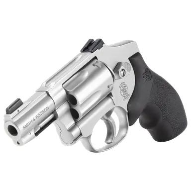 A stainless-steel 5-shot revolver, weighing in at 23 ounces, the gun has a properly fluted cylinder cut for moon clips; three are provided with the gun.