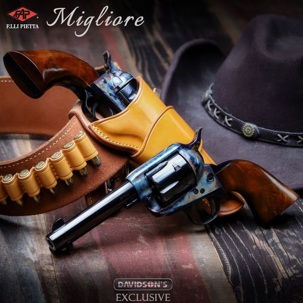 Aside from snubs and lever guns, we have an upgrade of the single action Colt-style revolver from Pietta Firearms. In a collaboration with Davidson’s, they’re producing the First Edition Migliore Series single-action revolver.