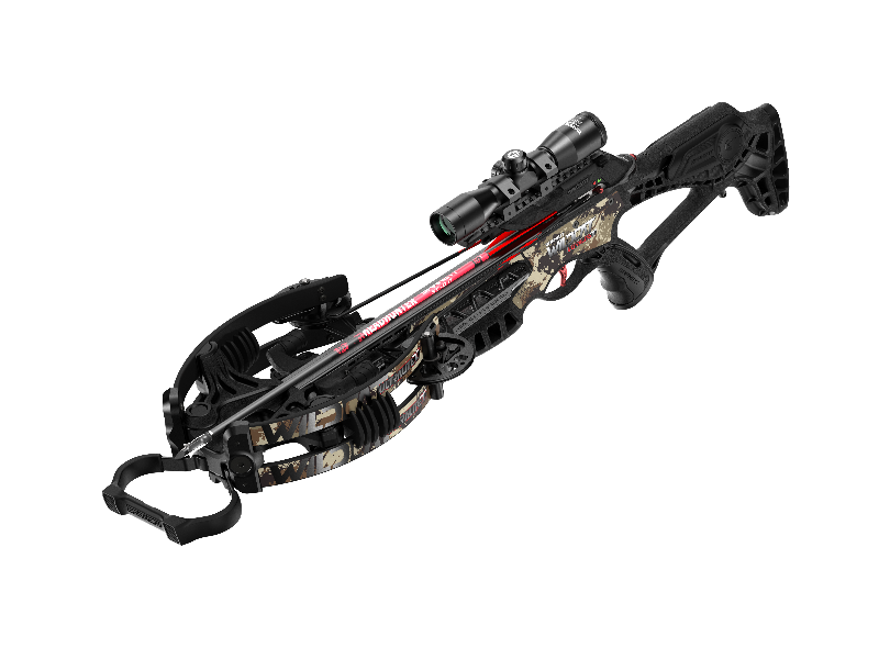 The Wildcat Ultralight DC is built on a foundation of trusted performance, now enhanced with upgraded functionality. It launches 20-inch bolts at a commanding 410 feet per second, generating 142 ft-lbs of kinetic energy to ensure deep, ethical penetration. Its compact, rugged frame is engineered for the field, featuring a single-bolt assembly for quick setup and a narrow 6.75-inch axle-to-axle width when cocked for superior maneuverability in tight blinds and treestands. The Wildcat Ultralight DC is available with either a Rope Cocking Device or Crank Cocking Device. The crossbow's design prioritizes shooter control and customization, featuring three Picatinny accessory rails for mounting essential gear and a pass-through foregrip with integrated finger reminders for a secure, consistent hold.