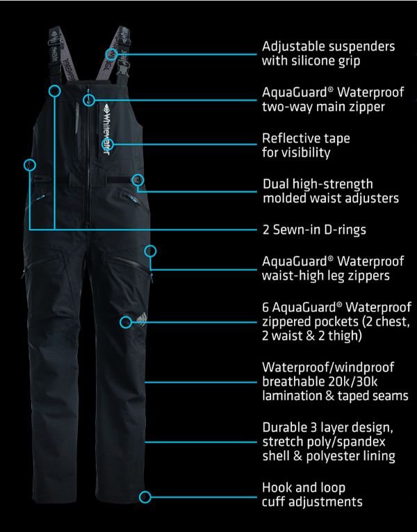 The first generation of extreme weather outerwear entered the fishing scene in the 1990's. Although many suits were indeed waterproof, they draped over your body like a heavy tarp and built like a 1-ton truck. Movement was severely restricted, too. You'd literally get tired fishing in it for a day because of all the movement you make while fishing. On the other hand, Whitewater's 4-way stretch fabric moves with you on every cast and when you kneel to land fish, remaining comfortable all day long. Today, mobility is key and the Great Lakes Pro delivers.