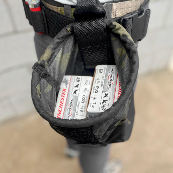 Attaching this to the belt, in the simple and secure Wilderness fashion, it remains rolled-up in storage until needed – to stow empty or partly depleted magazines, ammo, additional loaded magazines, whatever you need to have available. Deploy it and the wide mouth makes it dirt-simple to put things in or take things out.