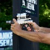 I posted a B-8 repair center, stood off at 25 yards and shot five-rounds one-handed, bullseye style. The first string was high – one hit clipped the top of the repair center page. This left two “6” ring hits, 1 high 7-ring and one low 7-ring hit, and a low 9. That gives 35/50 – a miserable score, but these are fighting sights, not target sights.