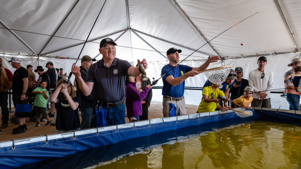 Young kids were lined up inside the fishing tent to get the chance to land a fish, with the help of state wildlife agents, and the looks on those young faces were priceless.