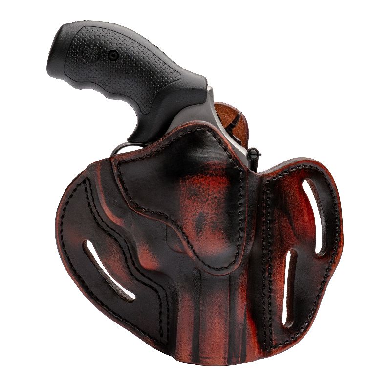 The RVH-5.3 is an open-top holster offering level 1, passive retention. To draw the revolver, simply pull up on the firearm with firm pressure to clear the holster.
