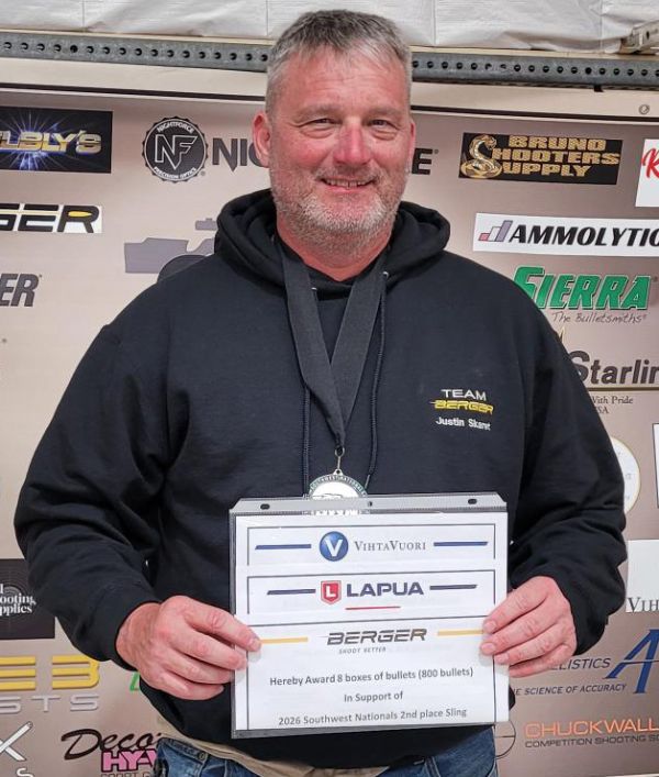 Mesa, AZ – Berger Team member, Justin Skaret brought home a second place finish this past week at the 2026 Southwest Nationals in the long-range sling division.