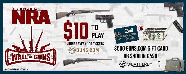 Attendees can visit Booth #39 near the Boat Hall to experience the Wall of Guns firsthand. New this year, for just $10, guests can enter for a chance to win either a $500 Guns.com gift card or $400 cash. Gift card winners can use their prize toward any item on the Guns.com website, a major upgrade from past years, when winners could only select a firearm from the Wall of Guns. With one winner drawn for every 100 tickets sold, the odds are in participants' favor, and every ticket purchased directly supports The NRA Freedom Action Foundation.