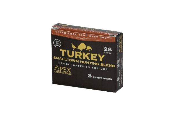 Columbus, Miss. – APEX Ammunition is now offering a 28-gauge load in the precision-built SmallTown Hunting Blend line of turkey ammunition. Engineered for hunters who demand maximum pattern density, lethal energy, and extended range, this 2 ¾" 1 ½ oz. duplex load combines the knockdown power of #7.5 Tungsten Super Shot with the pattern-filling density of #9 TSS. The result: devastating close-range impact while maintaining lethal pellet count at distance.