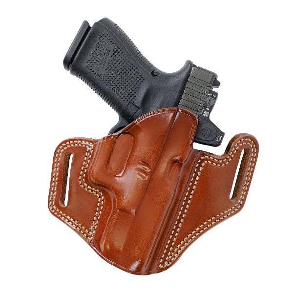 A professional-grade belt holster hand-molded by Galco's experienced craftsmen to fit specific handguns, the updated 2.0 design is cut to accommodate most carry-style optics while working equally well with iron-sighted pistols. The optic cutaway also allows the pistol to clear leather even faster, and promotes a smoother, faster draw for shorter-waisted users.