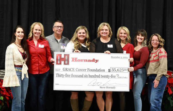 Hornady® recently donated $35,625 to the GRACE Cancer Foundation in Grand Island, NE., with a matching amount going to the American Cancer Society for a total donation of, $71,250 split evenly between the two organizations.