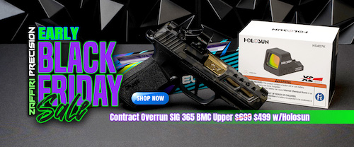 In addition to the SIG P365 deal, Zaffiri Precision will also be offering a FREE Holosun optic with ALL complete uppers (excluding the ZULU series) and 50 percent off all compensators, including threaded and non-threaded versions. These sales are live now through Cyber Monday.